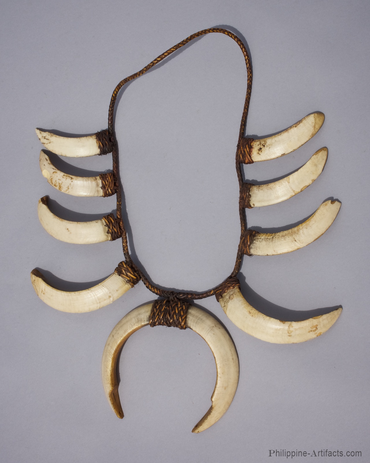 Necklace of 10 boar tusks. Used by tribal elders of Bontoc tribe, Northern Luzon, not so old