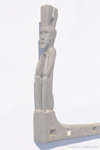 76 Ifugao figurative carving on an "L" shaped bracket, 75 cm high and 94 cm long, with figure of a squatting man on the upper half, all covered with a dark black smoky patina. This was a hanging bracket used to support a shelf inside an Ifugao hut, probably near the open fireplace. It is carved from a single piece of hardwood that was originally a tree trunk with a thick perpendicular side branch. Registered as a Cultural Property by the National Museum of the Philippines in 1994, with stamp No. 0047835. (Cf. Anderson, Indigenous Art of the Northern Philippines, fig. 323 & 324 and p. 199).