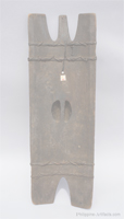 88 Wooden war shield, 94.5 cm or 37" high, from Bontoc tribe in Northern Luzon. Purchased in Baguio in 1992. Certified as a Cultural Property by the National Museum of the Philippines, with stamp 0047834, ca 1900. (For an old photo of a Bontoc warrior with such a shield, see Worcester, The Non-Christian Tribes of Northern Luzon, published in the Philippine Journal of Science, Manila, 1906, plate 11)
